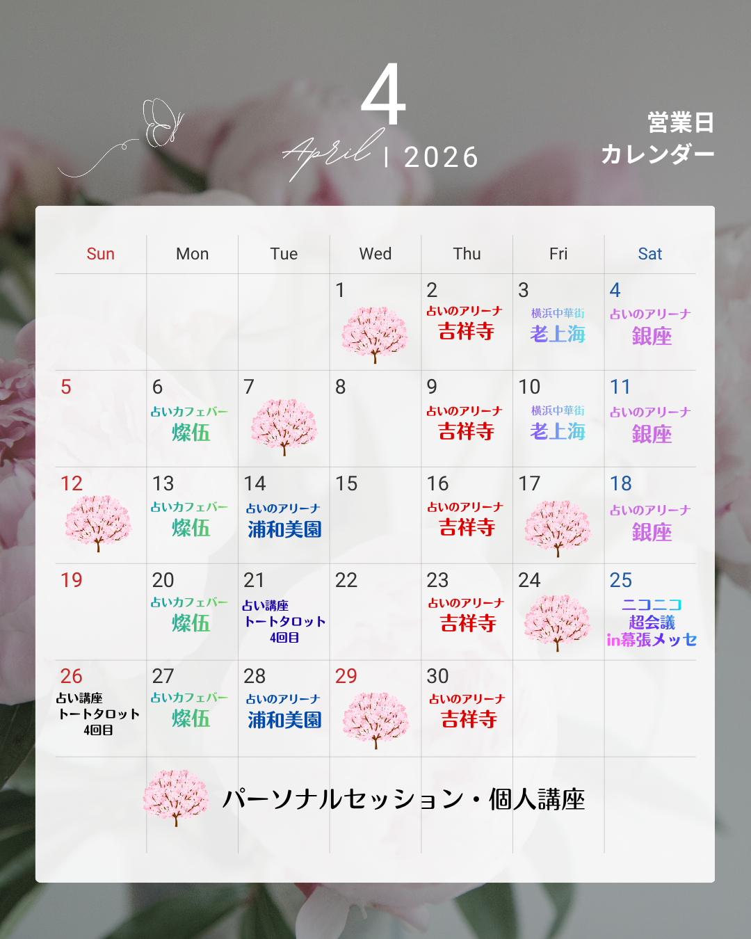 お待たせしました、2026年4月の鑑定・ご予約スケジュールをお知らせいたします。毎年、後半は早めにご予約をいただきます。ご検討中の方は早めにご確認いただければ幸いです。
