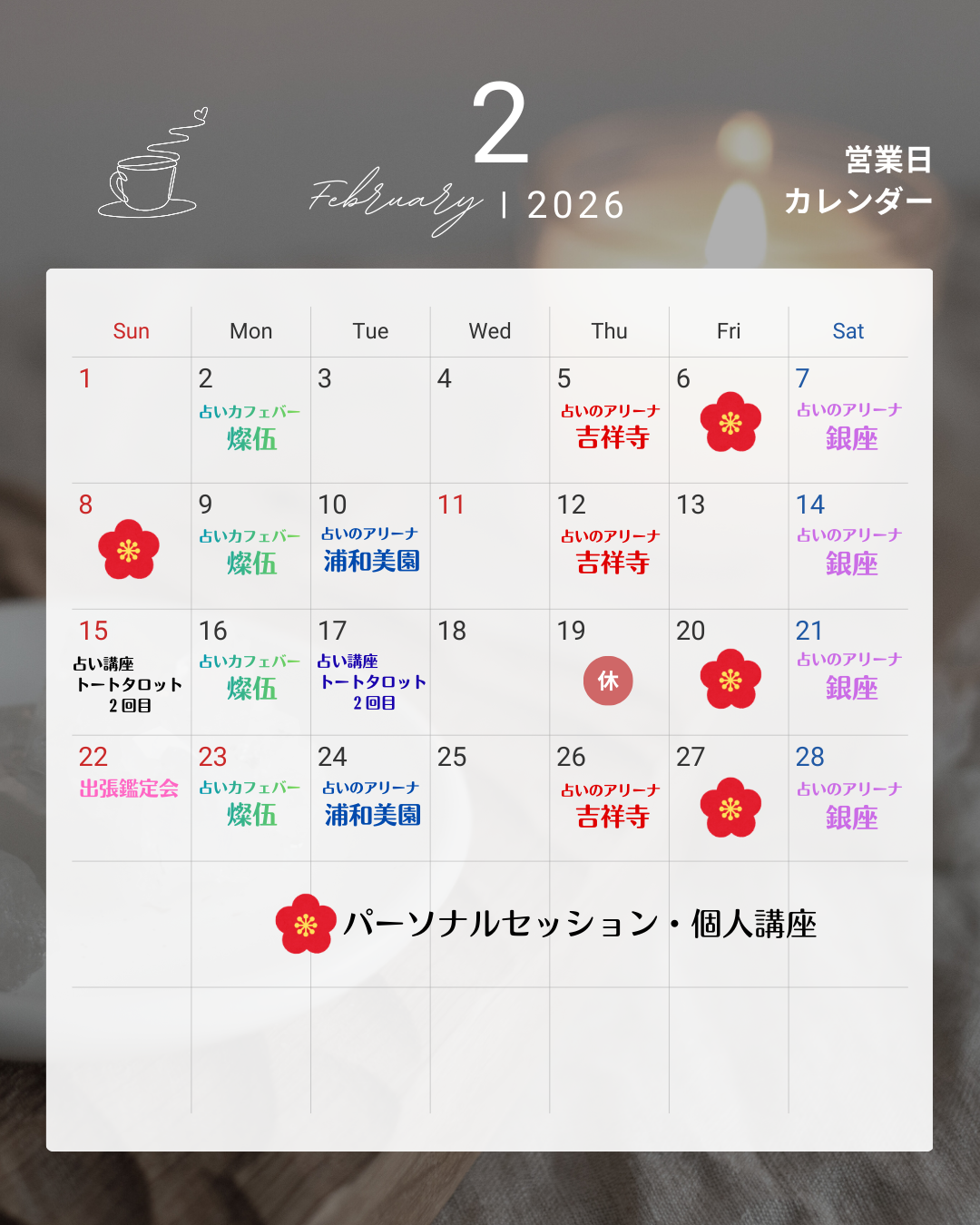 予約・お問い合わせ 2025.10.052026.02.02 鑑定予約 公式LINEからもご予約できます。 氏名 メールアドレス 鑑定をする場所と希望日時、鑑定時間(10分単位)を記入してください。折り返しお返事します。 お問合せ 氏名 メールアドレス 題名 メッセージ本文 (任意)